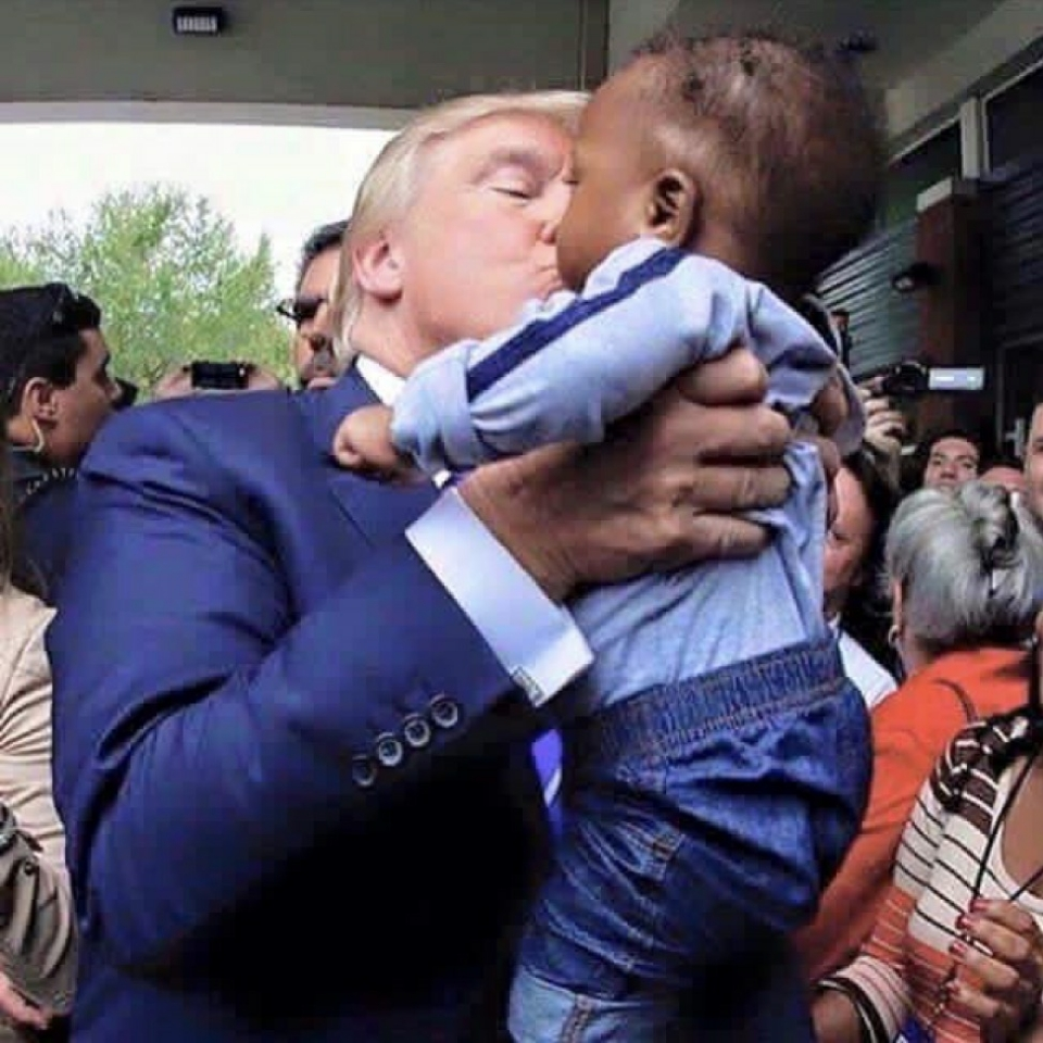 亚当斯的博客发出去不久,特朗普真的这么做了。特朗普亲了很多黑人小孩。